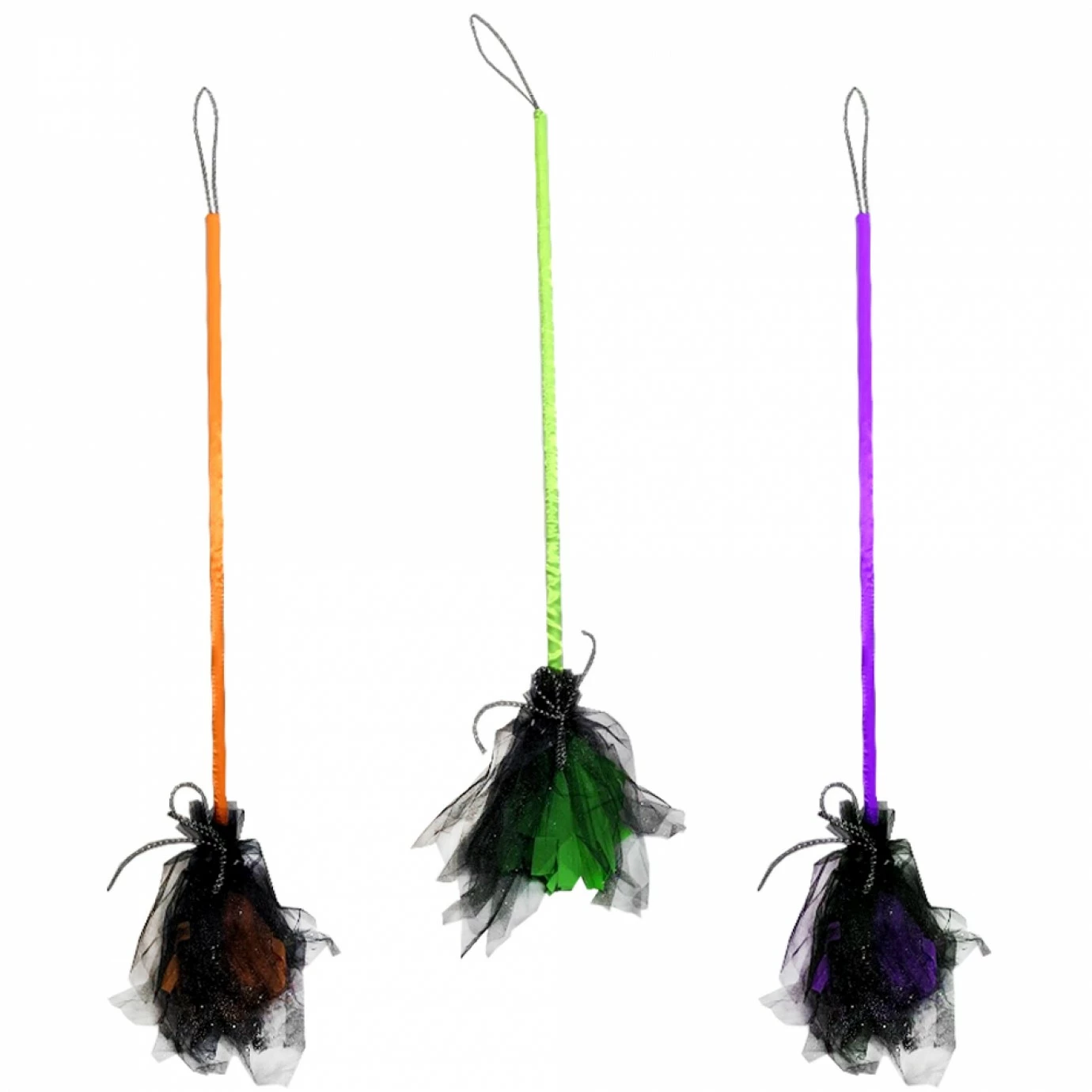 Broom handle is made with a moulded plastic handle, with attached tulle at the base, plus attached fabric bow.
