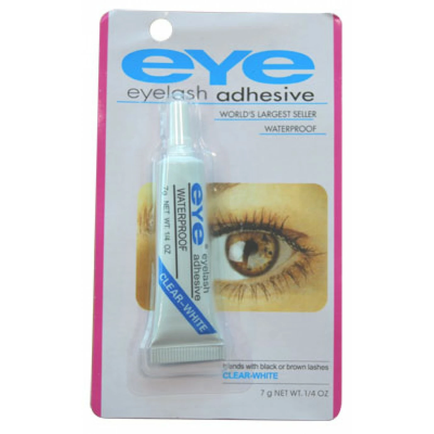 One 7 gram tube of eyelash adhesive, designed for use with our false eyelashes products. Dries clear/white, packaging features application instructions.