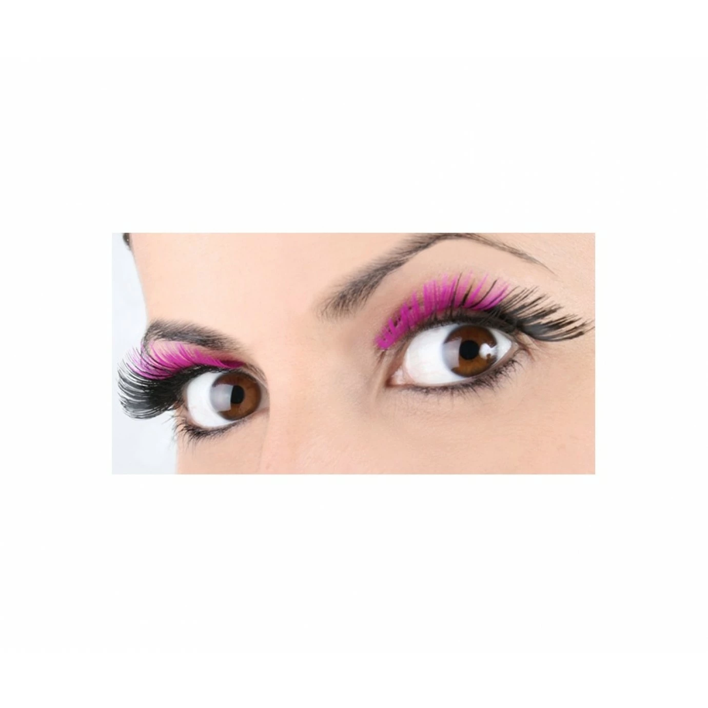 These easy to apply lashes are half magenta and half black from the inner to the outer eye. Adhesive is included.