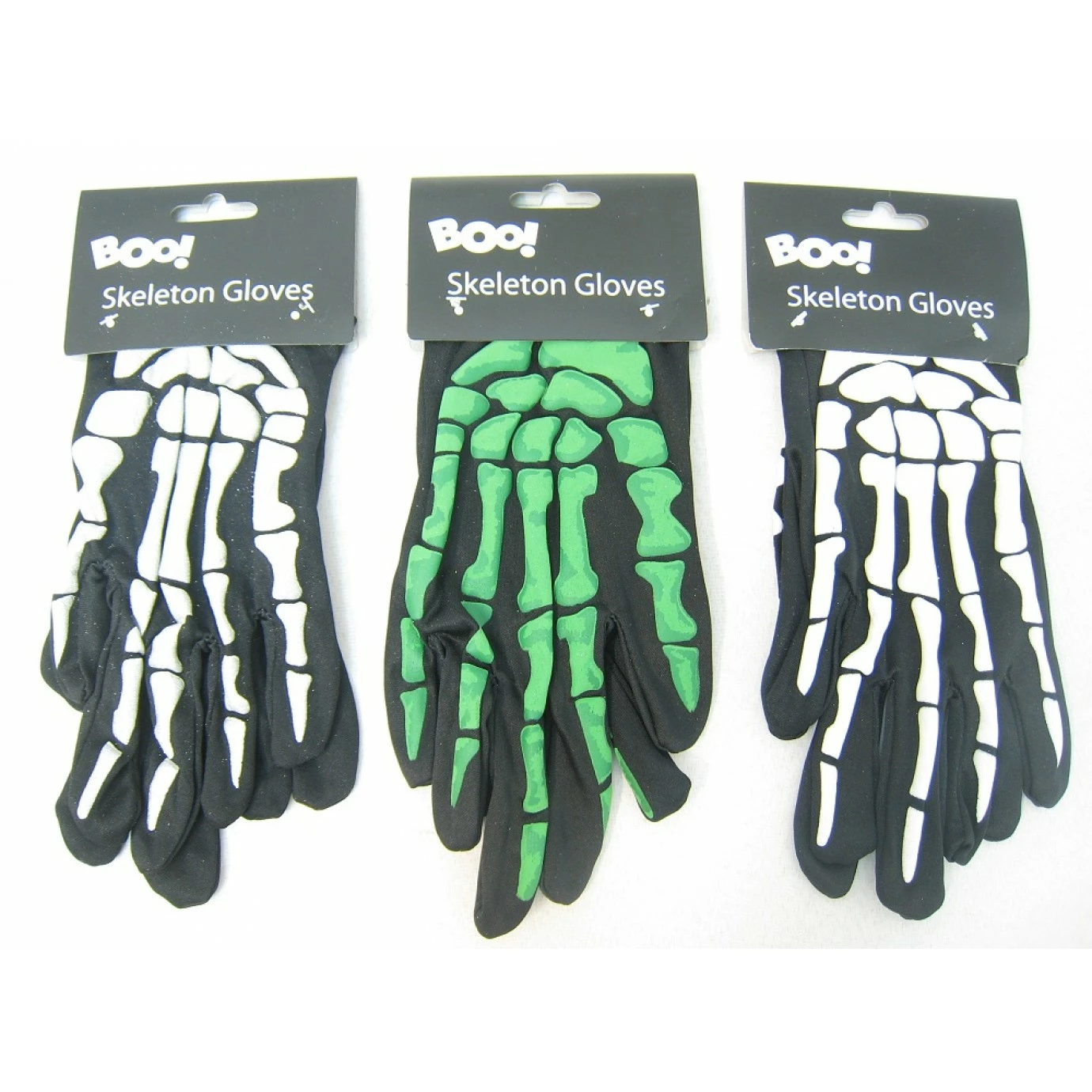 These gloves are made from from lycra with printed skeleton bones on one side only. Available in green only, please note the white design is no longer available.