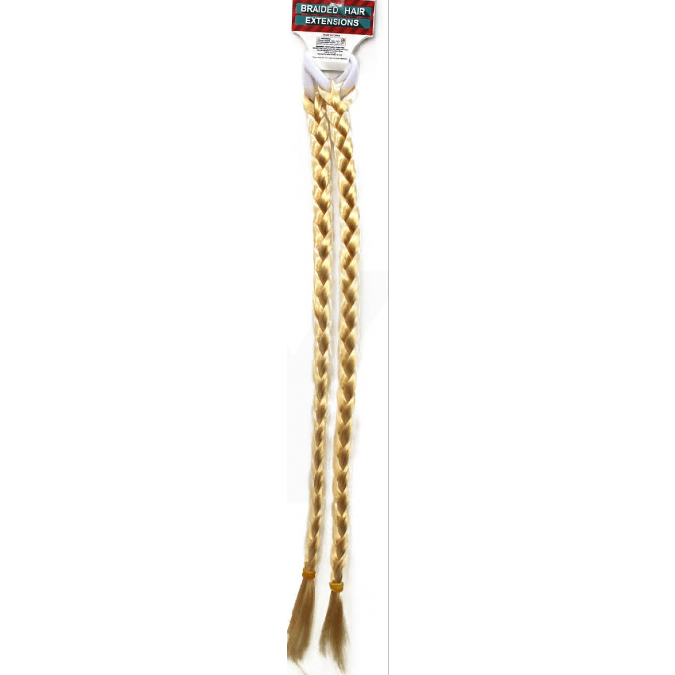This hair extension features two separate braids made from synthetic hair with an elastic on the end of each for you to easier attach to your own hair.