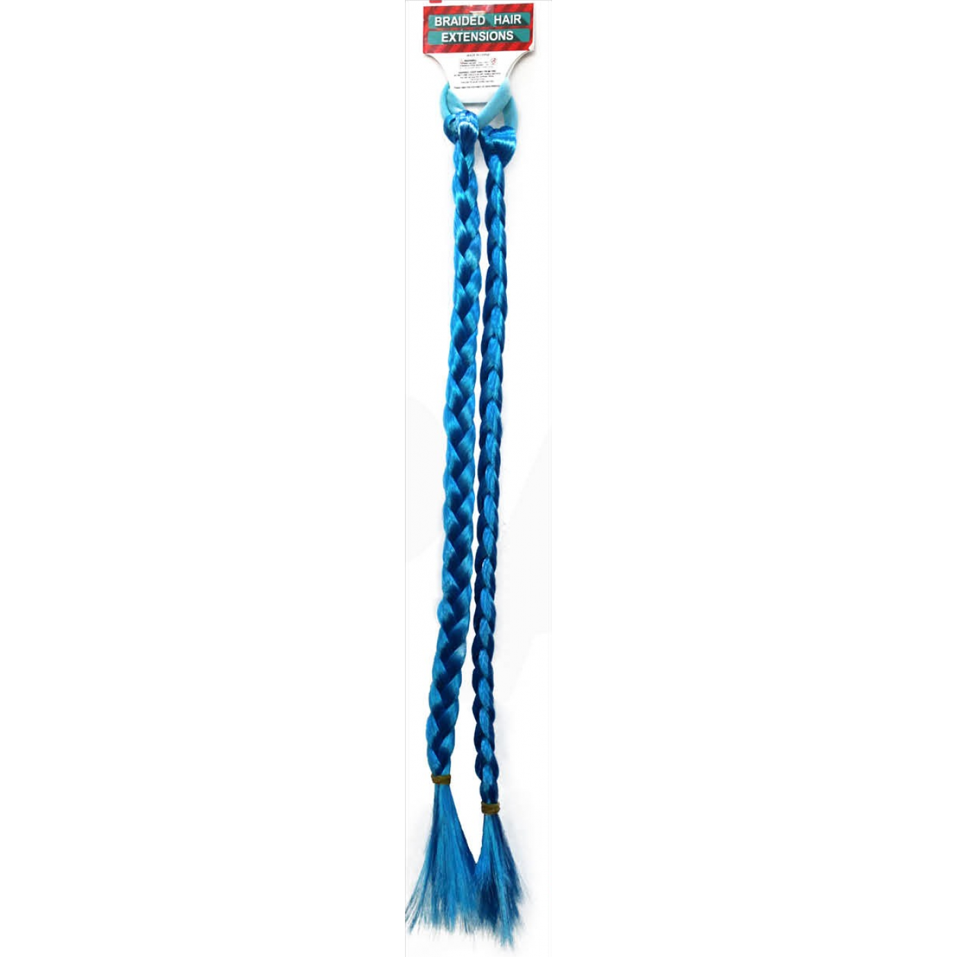This hair extension features two separate braids made from synthetic hair with an elastic on the end of each for you to easier attach to your own hair.