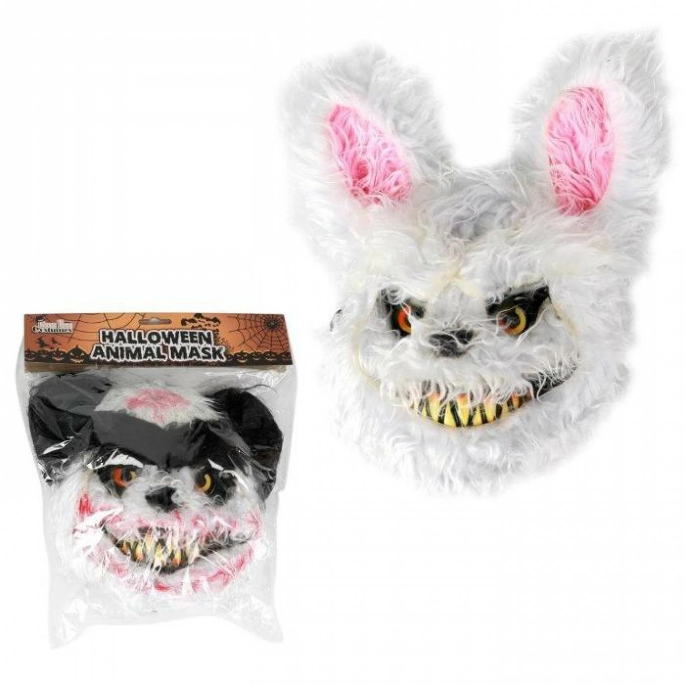 Mask made from plastic core with faux fur decorations.