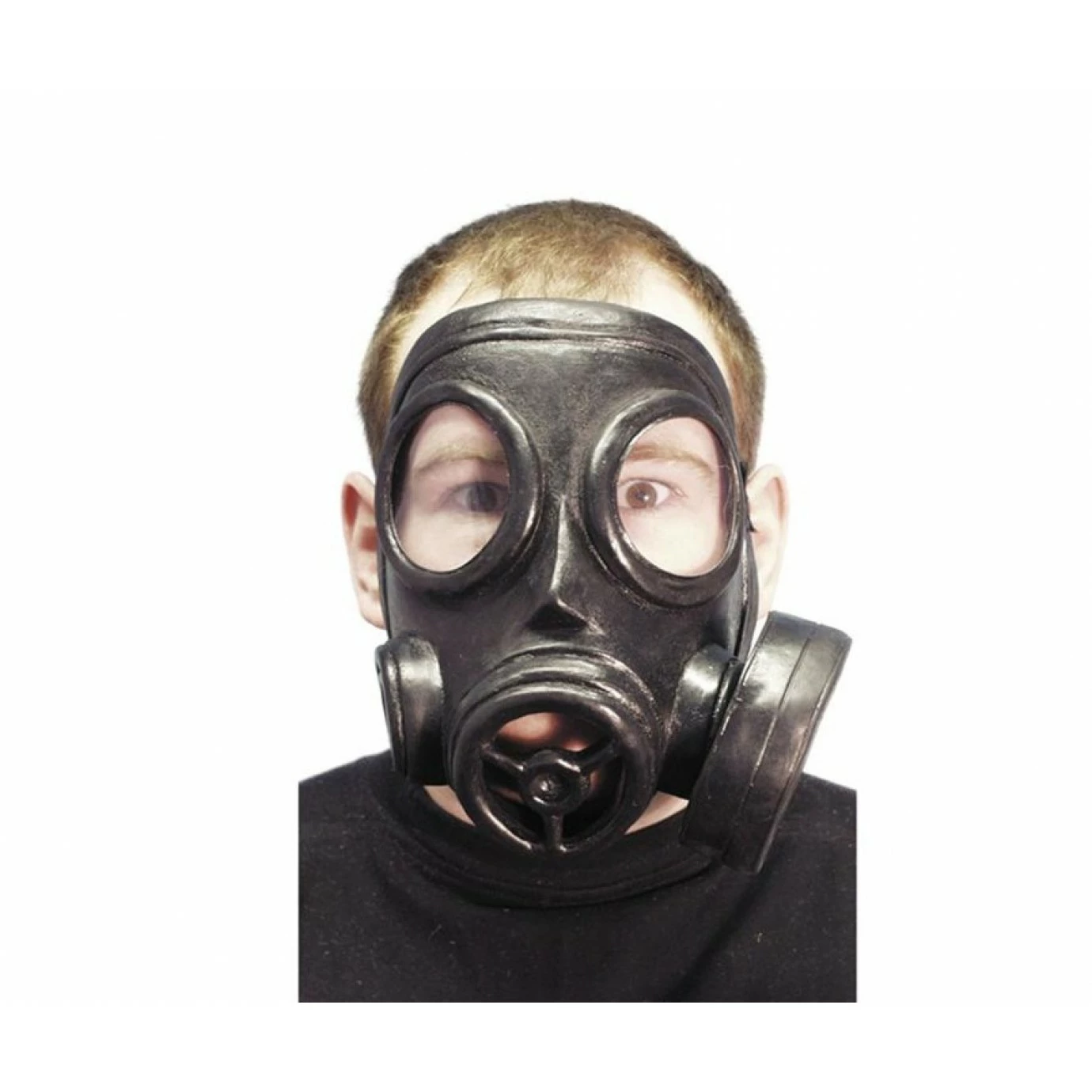 This mask is made of natural rubber latex in the style of an authentic creepy gas mask.