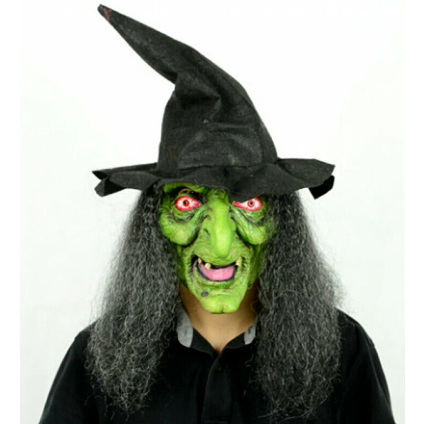 Celebrate Halloween with this classic green witch mask with attached hat.