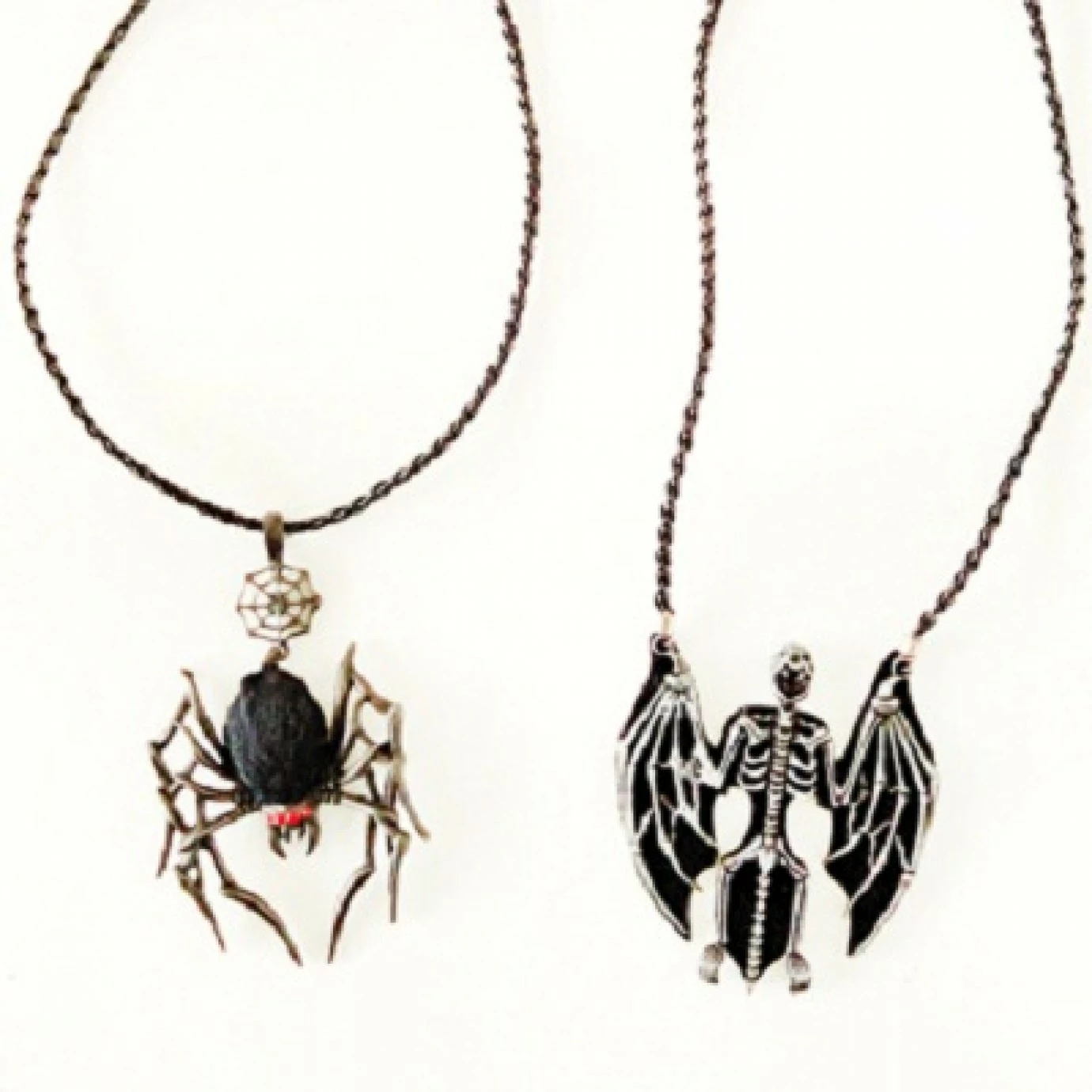Pendant is made from metal and is available in two assorted designs: Spider, or Winged Skeleton.