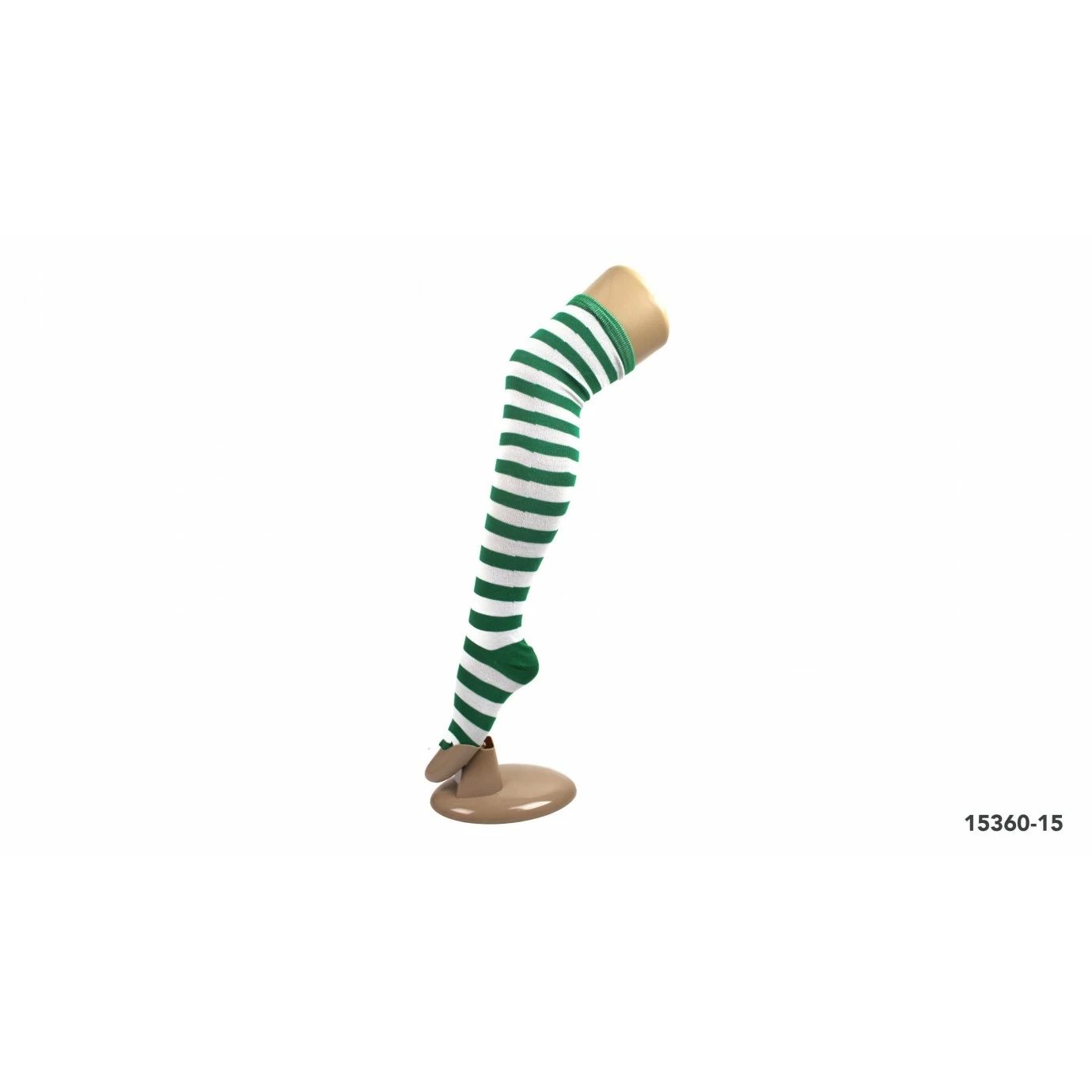 Have the perfect addition to your costume with these over the knee green & white socks!