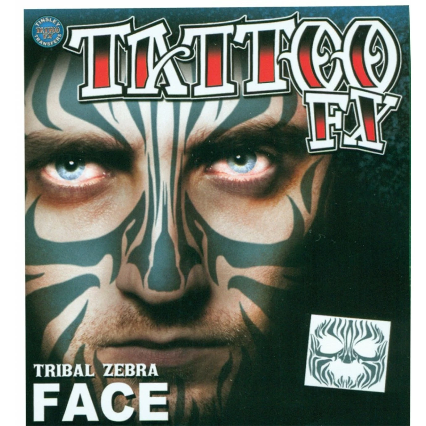 Pack contains one extra large tribal style facial temporary tattoo (measuring approximately 21 cm tall by 23 cm wide). Application is easy, simply peel the protective plastic away and press the tattoo against dry, clean skin and hold damp cloth against the back of the tattoo. Wait 30 seconds and peel off the backing paper. Gently rinse with water for best effects. These top quality costume accessories are the most realistic fake tattoos available!
