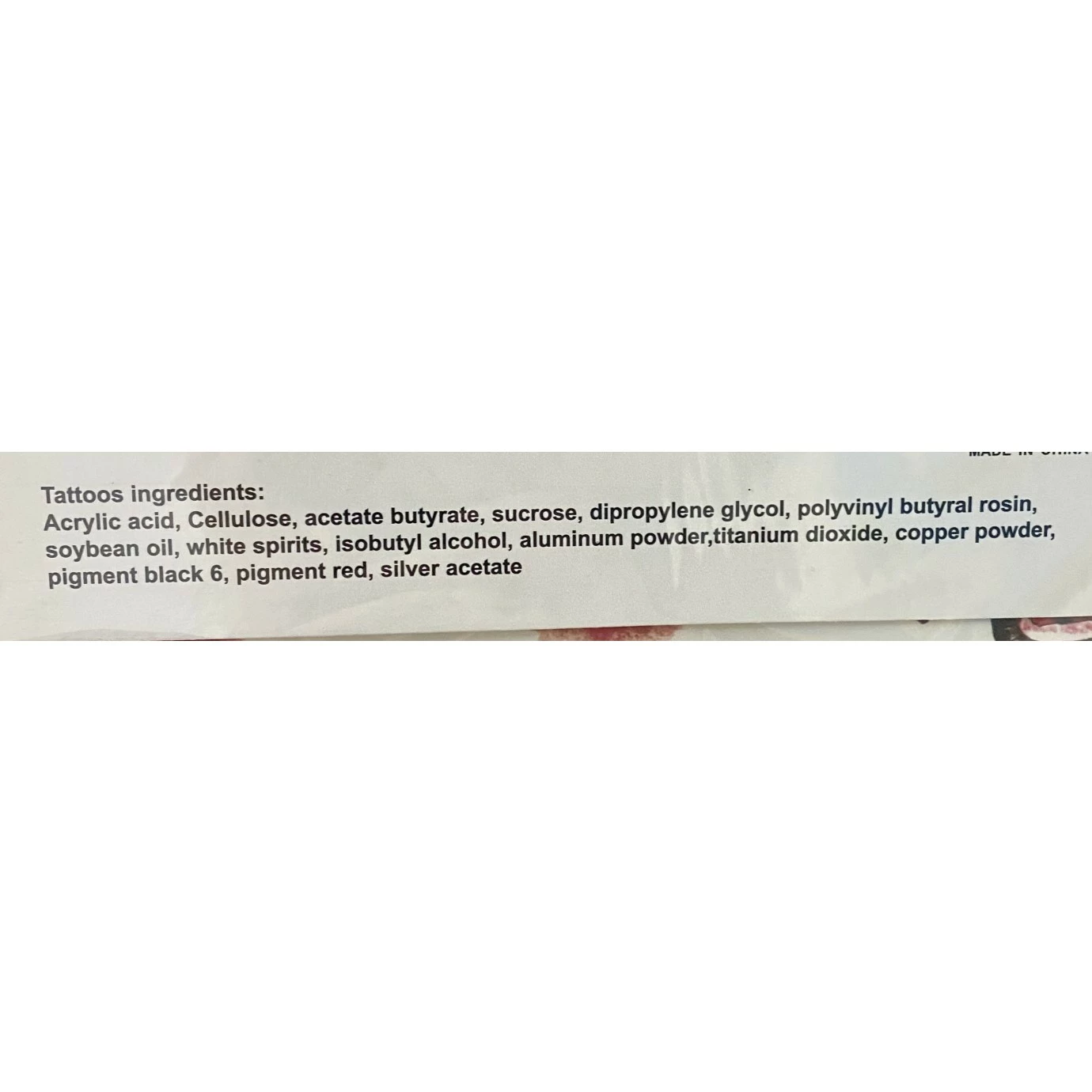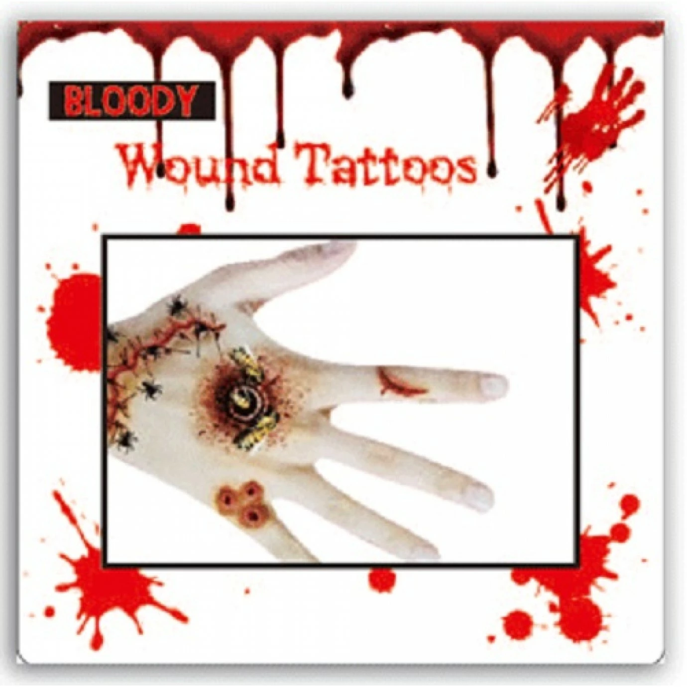 Pack contains one wound tattoo sheet with various scary looking injuries.